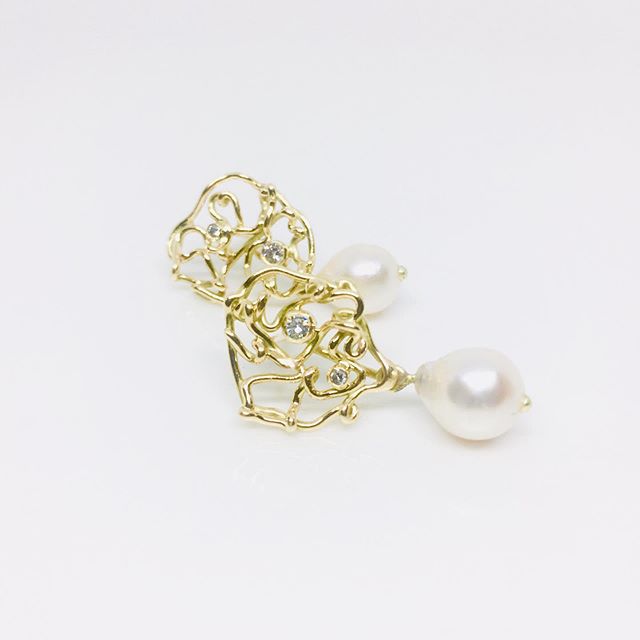 Twisted earrings with diamonds and beautiful white Southsea-pearls. The earrings also can be worn without the pearls. ๐