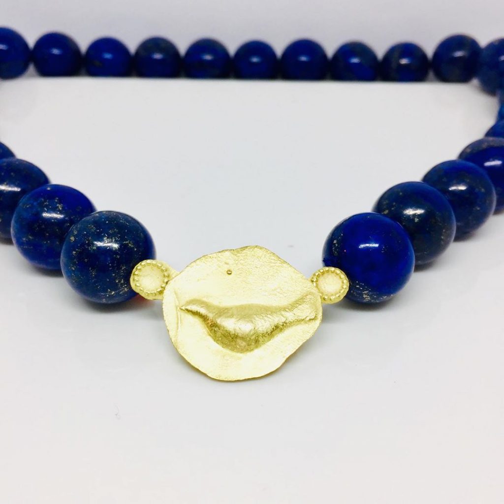 Peace is in the air….and surrounding You with this necklace with a dove with a twig. And for the times You do not want to wear this symbol, You can take it out and just wear the Lapis Lazuli beads.