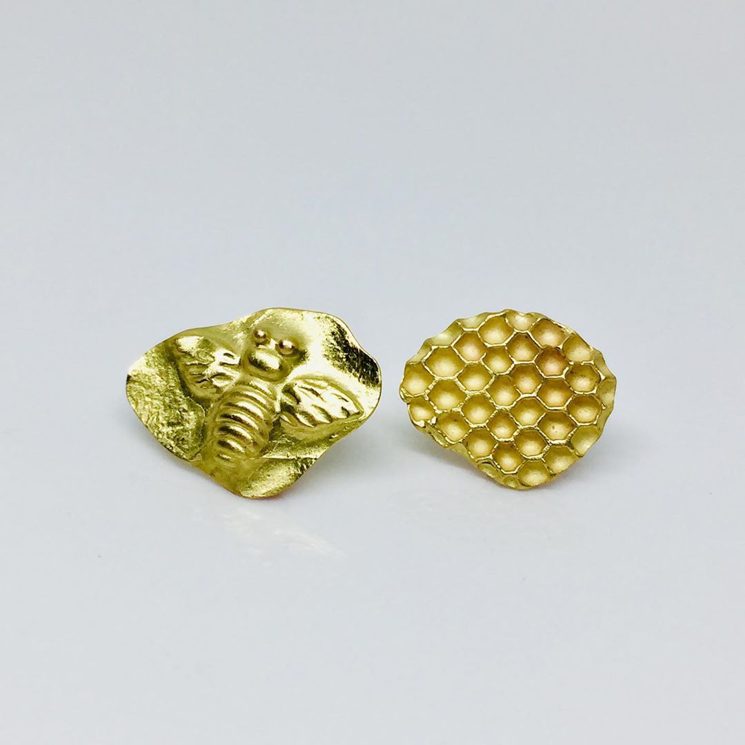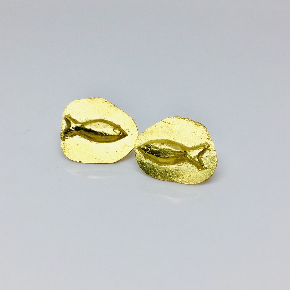 Fish ear studs, handcrafted from 18 carat gold. ๐๐